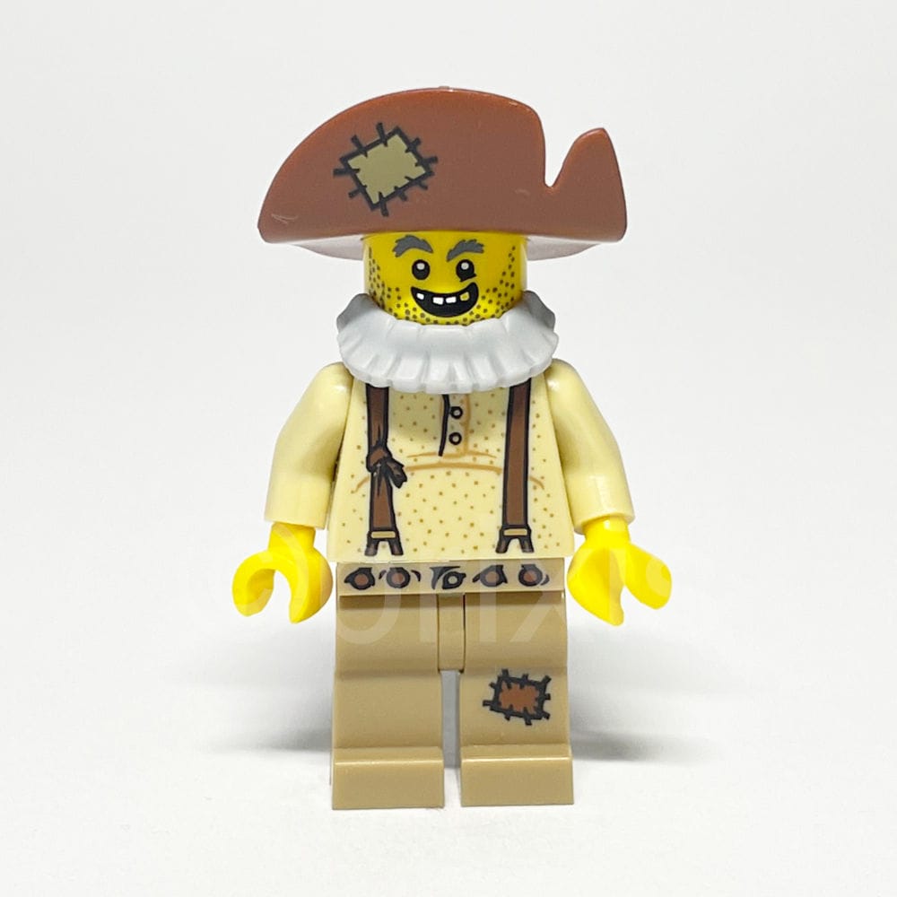 - Beine: Dunkelbeige Hüften und Beine mit rötlich-braunen Knöpfen an der Taille und einem Flicken auf dem linken Bein ergänzen die Minifigur um ein detailreiches Unterteil